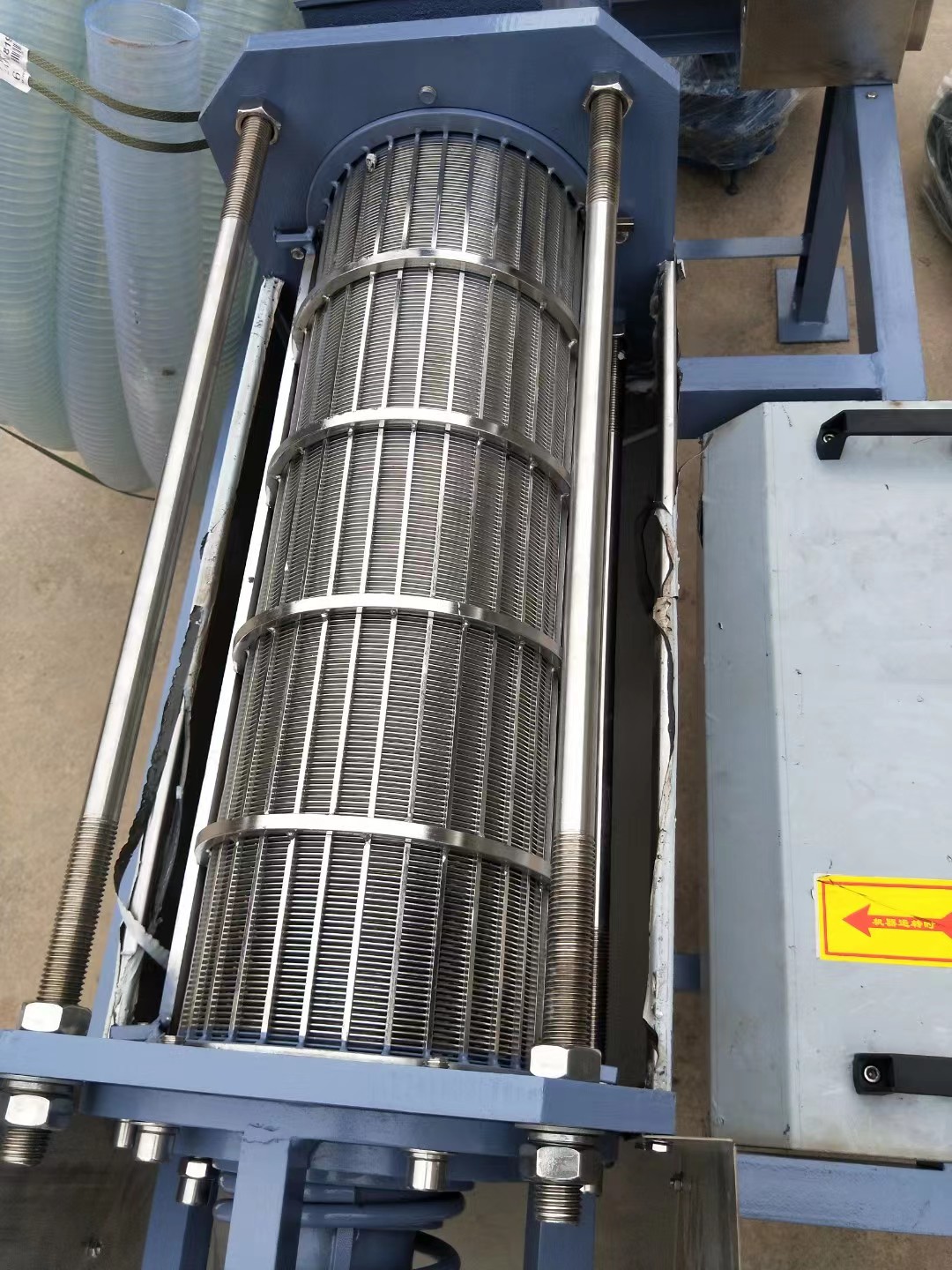 *干湿分离机产品:使用304不锈钢材质、其自动化水平高,运转速度低、操作简单、易维修、日处理量大动力消耗低、适合于连续作业。整机外形尺寸较小是规模化养殖场理想的粪便处理设备,较大幅度提高畜禽粪便处理与效益